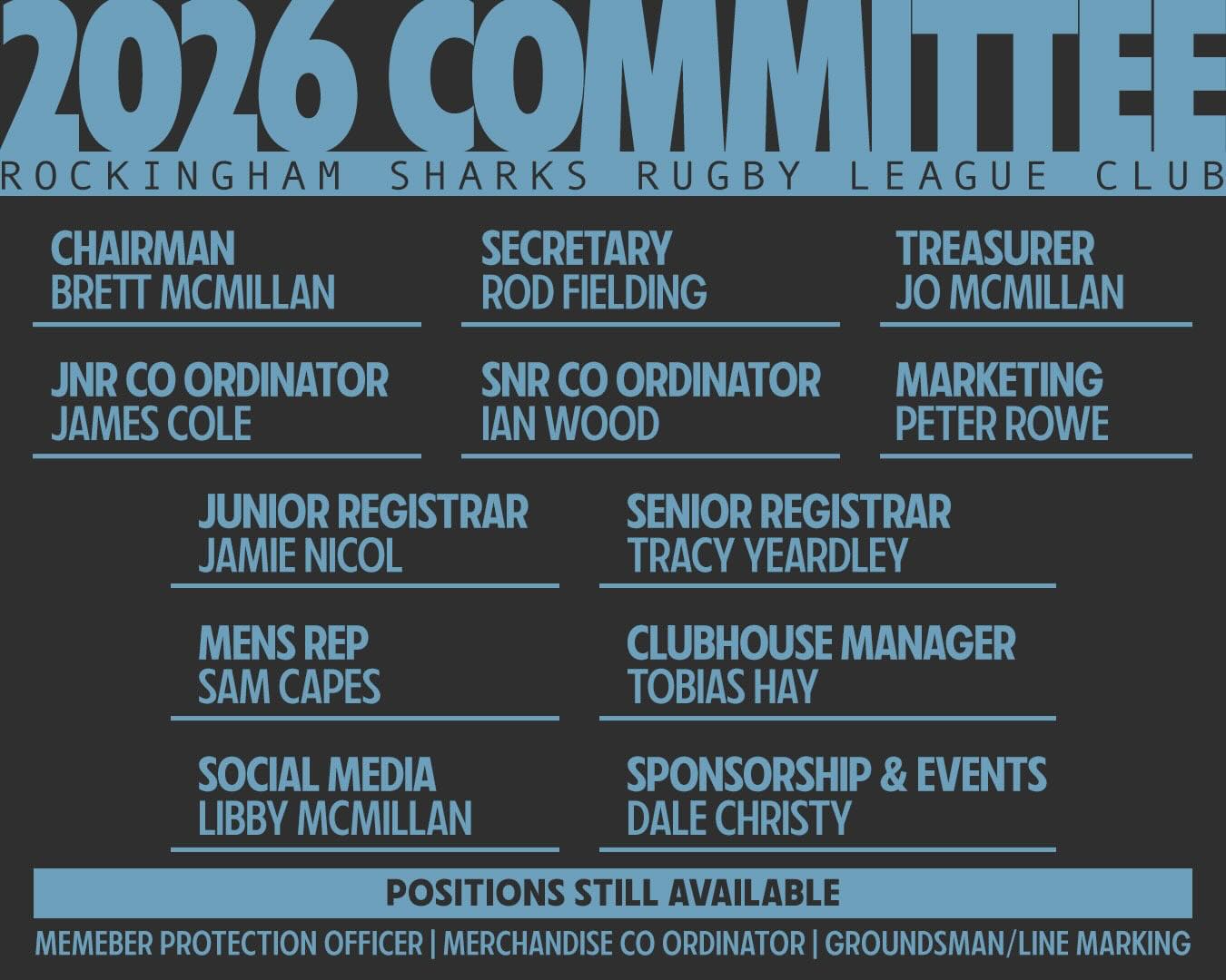 Sharks 2026 Committee… Some new, some old and some returning faces are on board for the next ride!!